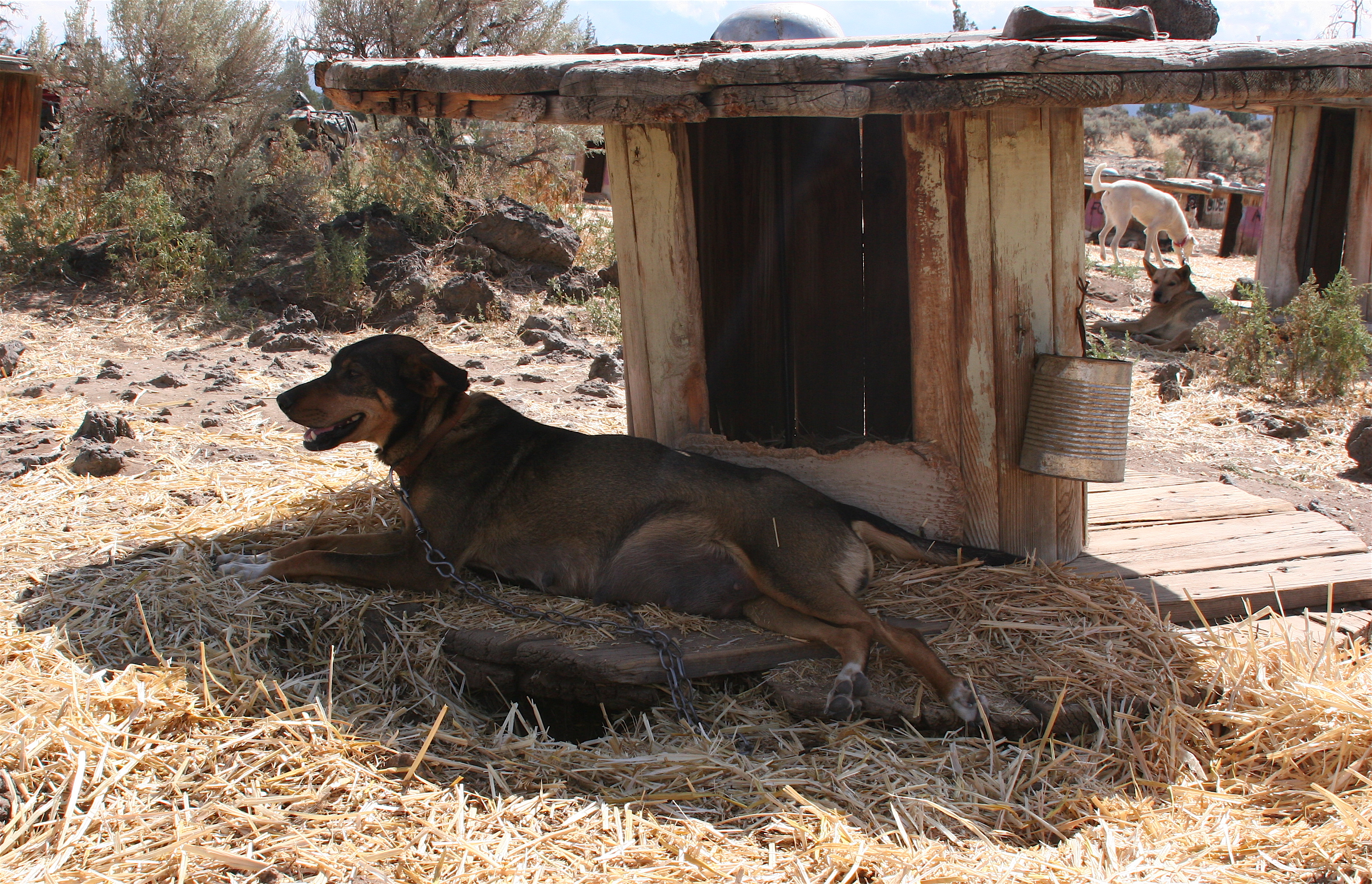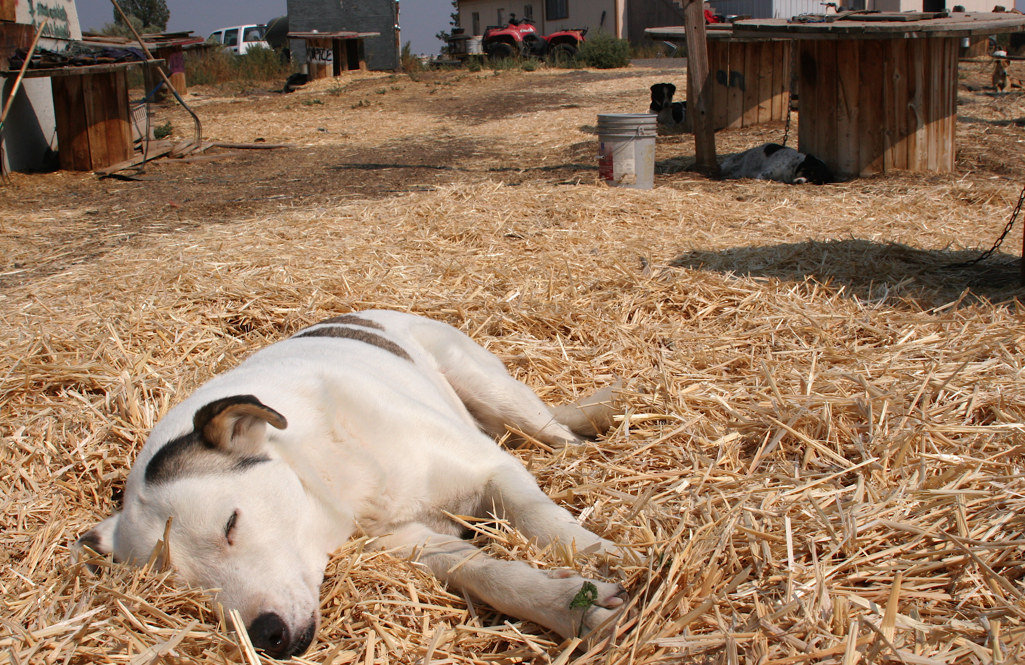 The arrival of huge piles of sweet-smelling straw to be spread amongst was probably the most fun task in the yard yet to date. The dogs are so ridiculously excited to get straw for their beds and houses, its super sweet how they (after sniffing and peeing on it) kick it around efficiently with their back legs to their satisfaction then immediately curl up to nap.